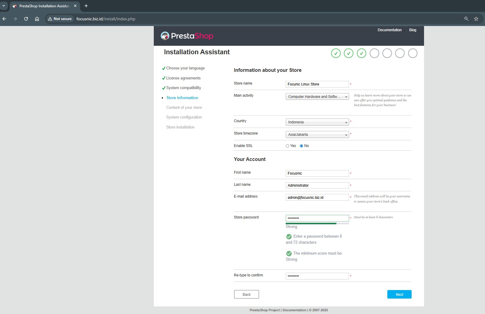 Fill in PrestaShop information