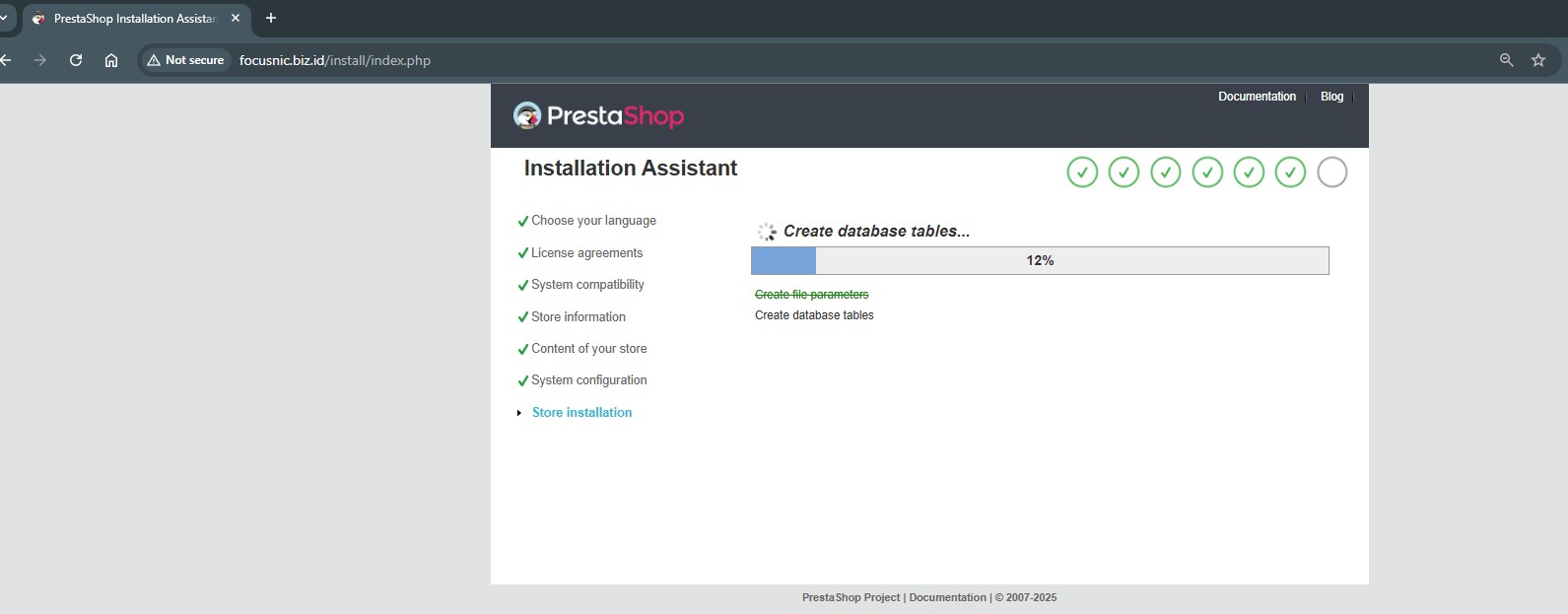 Wait for the PrestaShop installation process to complete