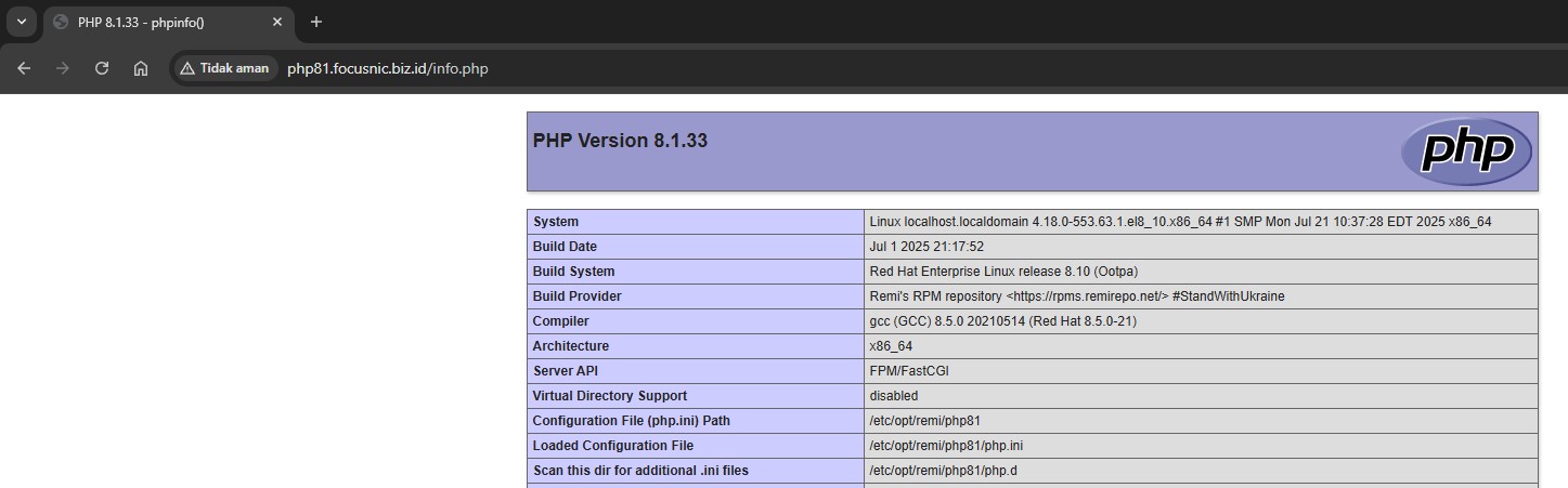 Then access via browser http://php81.focusnic.biz.id/info.php