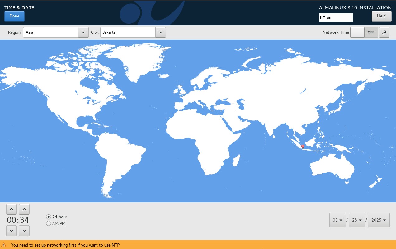 Untuk timezone saya menggunakan Region: Asia dan City: Jakarta lalu klik Done