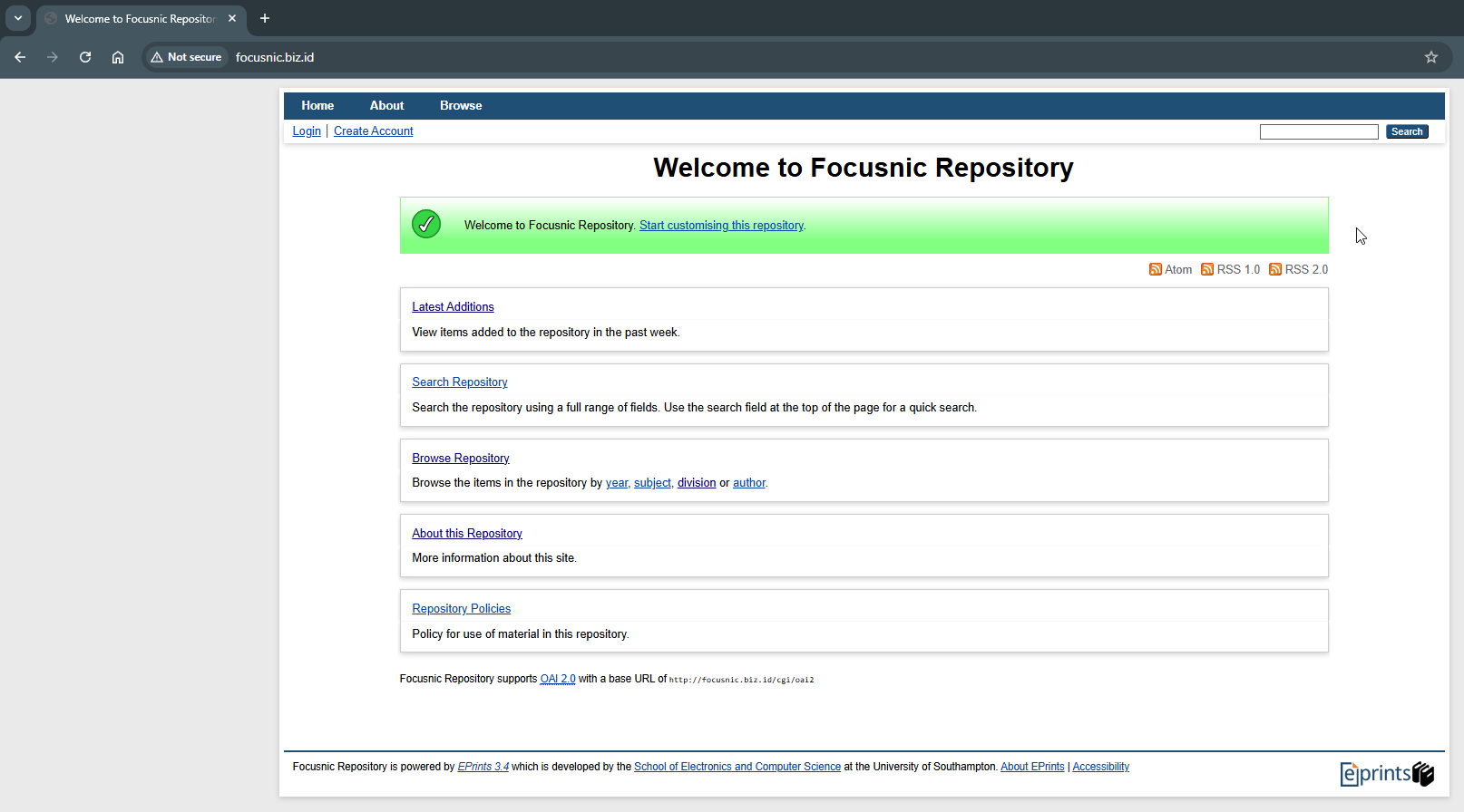 Silahkan akses instalasi EPrints pada browser dengan mengetik nama domain atau IP