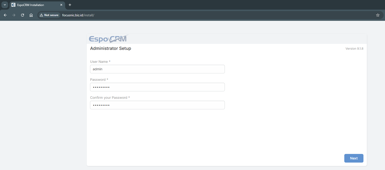 Buat user administrator untuk mengelola EspoCRM
