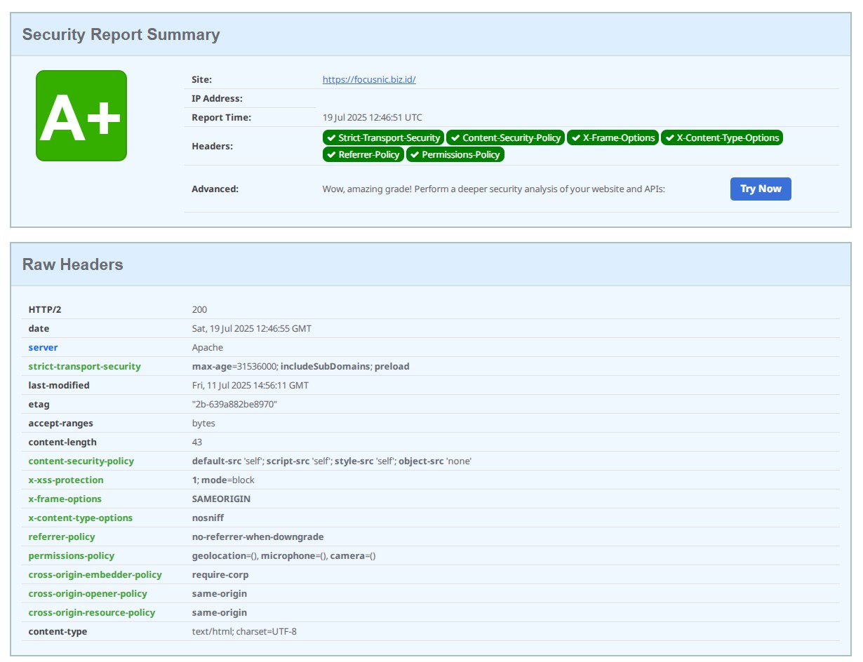 | Kepatuhan terhadap standar keamanan | Sesuai dengan rekomendasi OWASP dan audit keamanan server. |